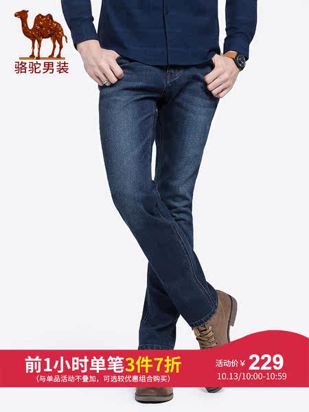 骆驼男装 2018秋季新款中腰弹力直筒牛仔裤青年休闲水洗长裤子男