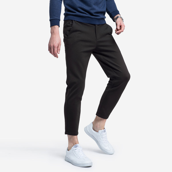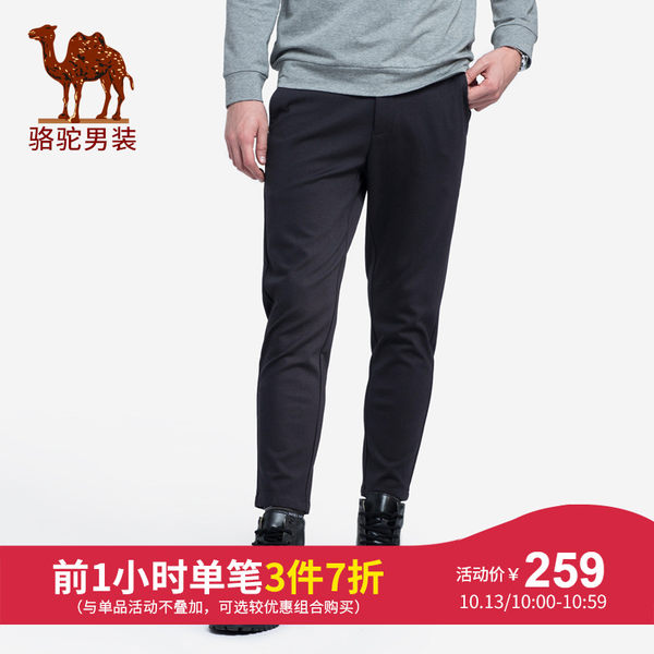 骆驼男装 2018秋冬新款男青年纯色松紧腰微弹修身小脚九分休闲裤